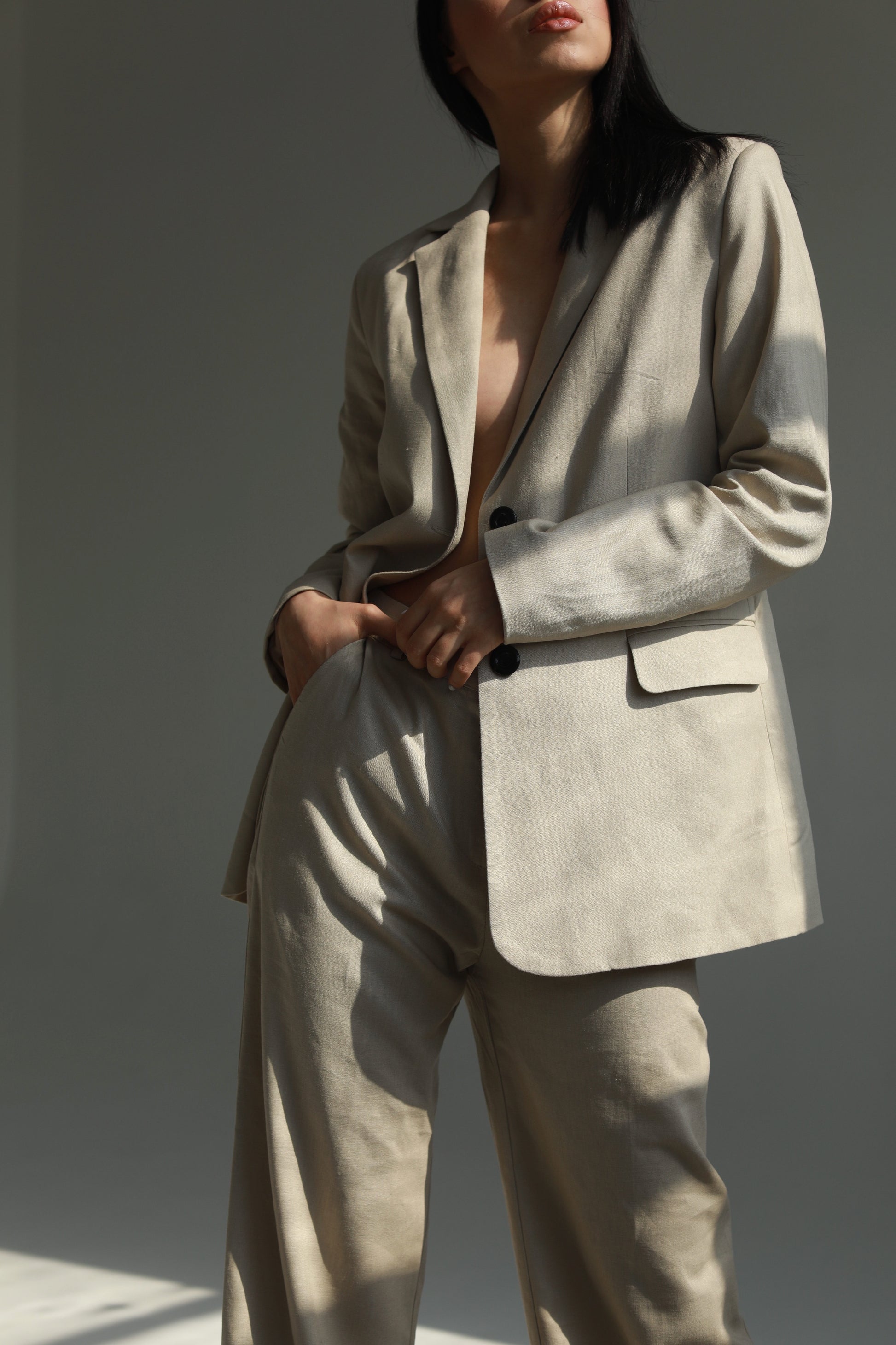 Sustainably handmade linen blazer designed for stylish women who love fashion and care for the planet.